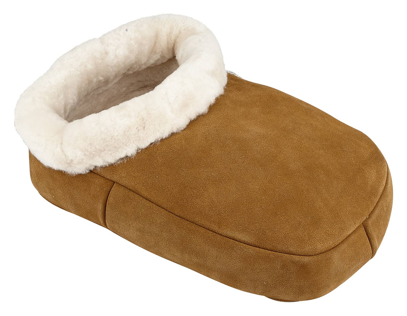 Crafted with a suede upper and suede sole, and fully lined with rich, plush sheepskin fleece, these footmuffs combine classic natural materials with a simple and timeless design that feels cosy and indulgent. The generous one‑size design accommodates both feet together, creating a warm, enveloping feel that’s perfect for colder days and evenings.