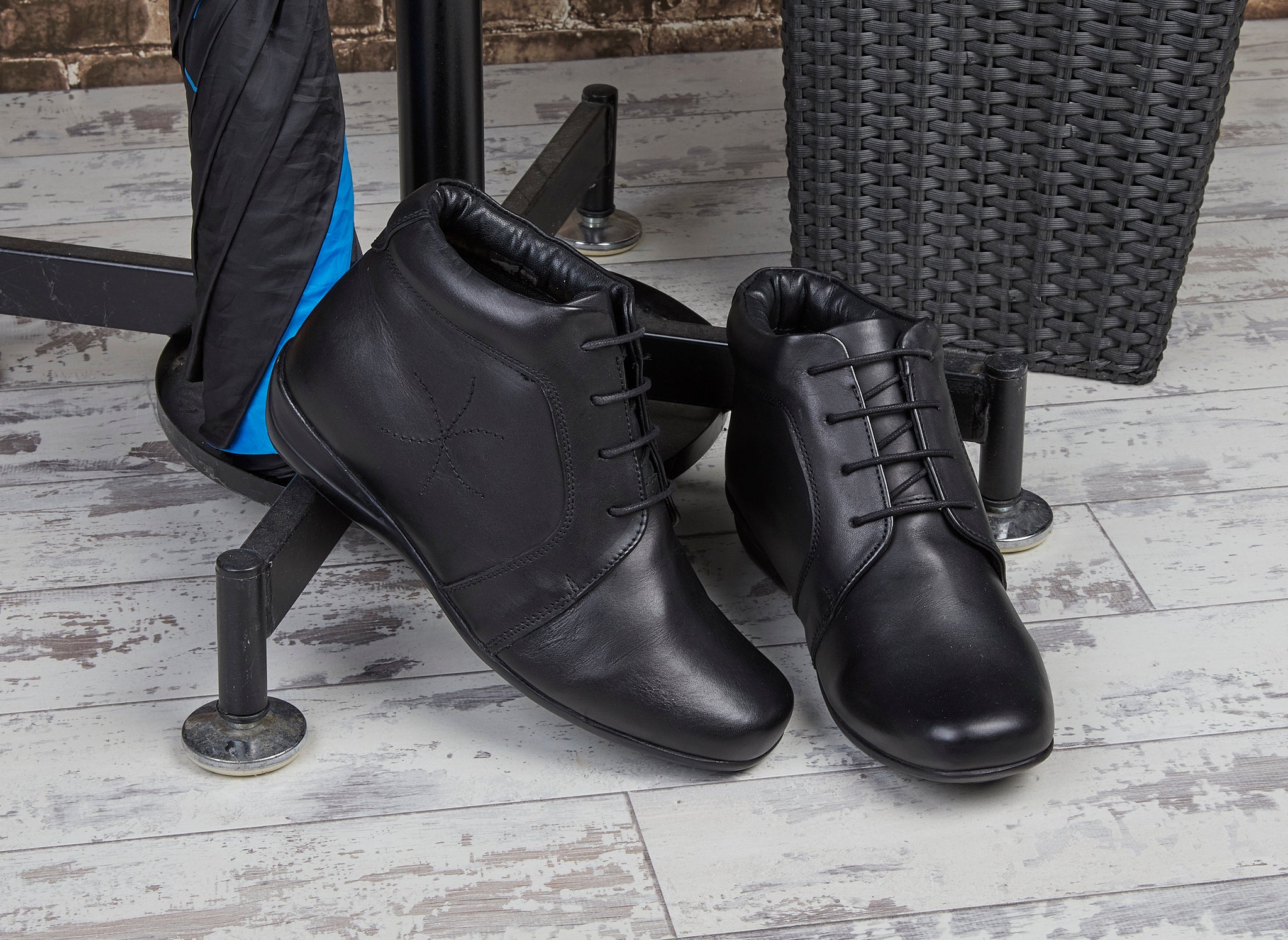 Our lace up ankle boot. Made with a soft leather upper, leather insole and hard wearing sole. The leather upper is waterproof. E fitting (wide).